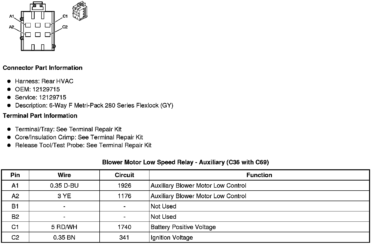 Blower Motor Low Speed Relay - Auxiliary (C36 with C69)