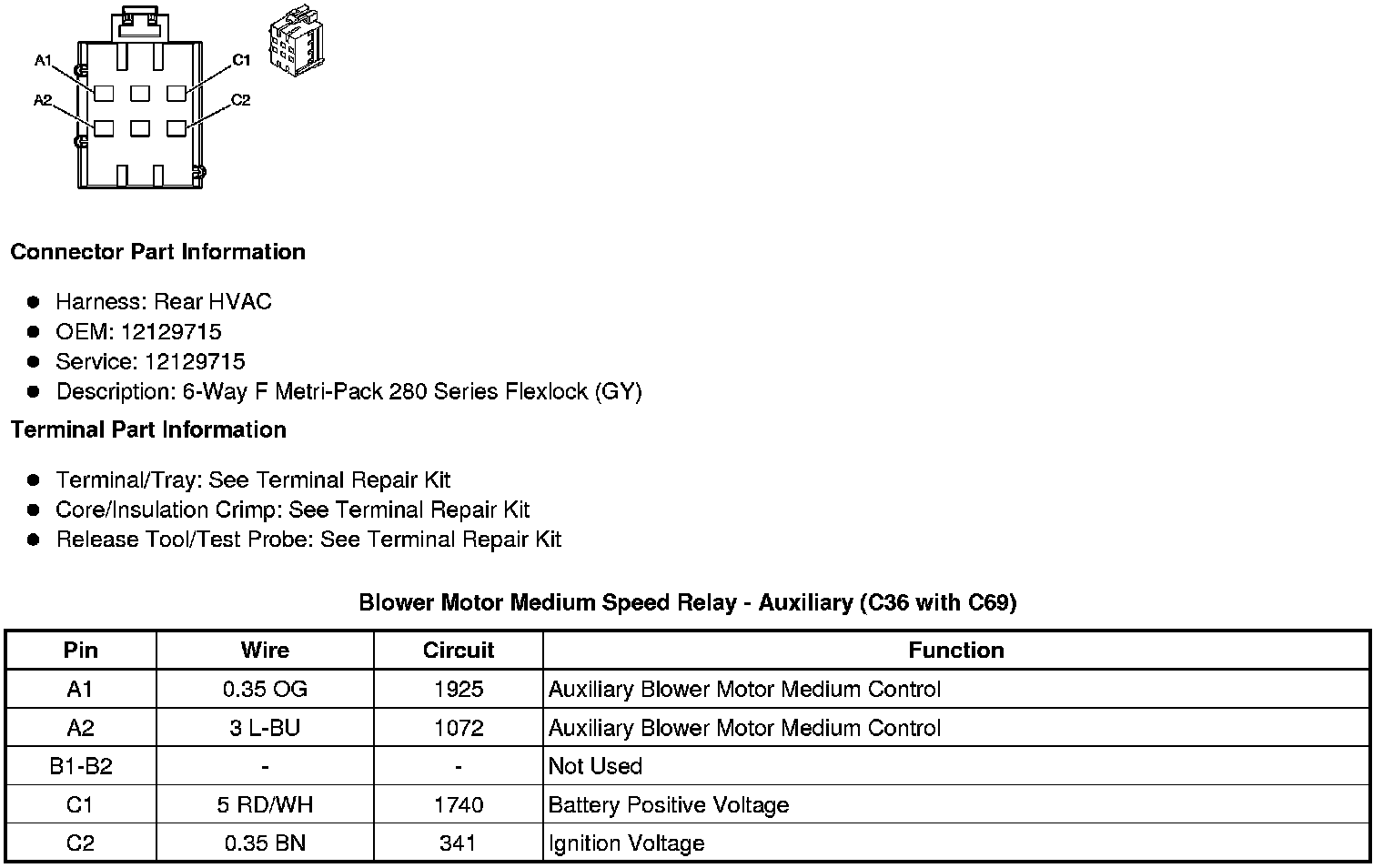 Blower Motor Medium Speed Relay - Auxiliary (C36 with C69)