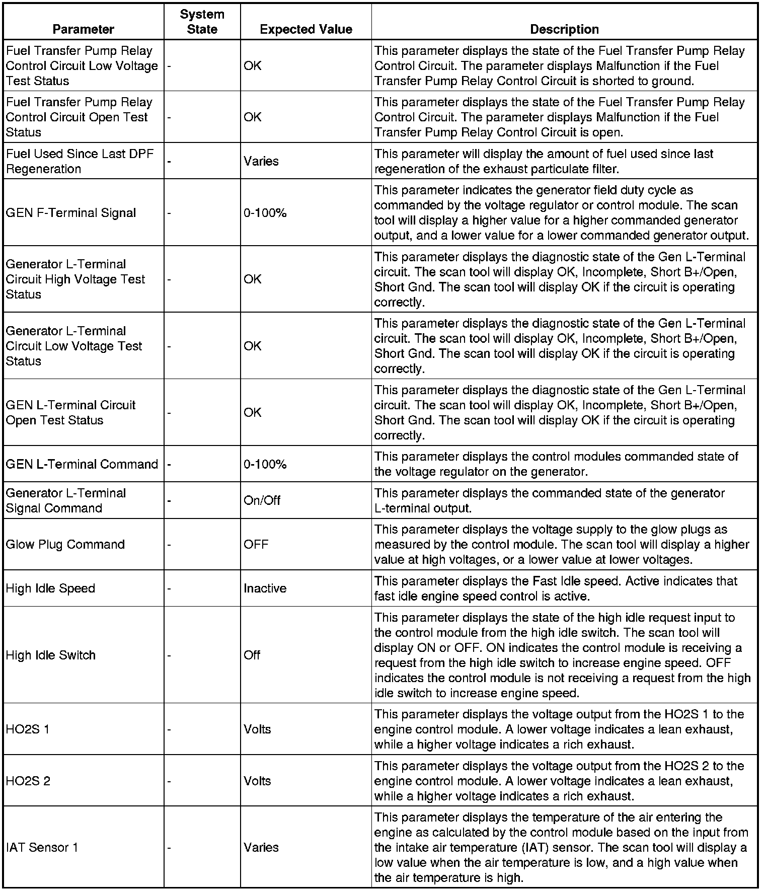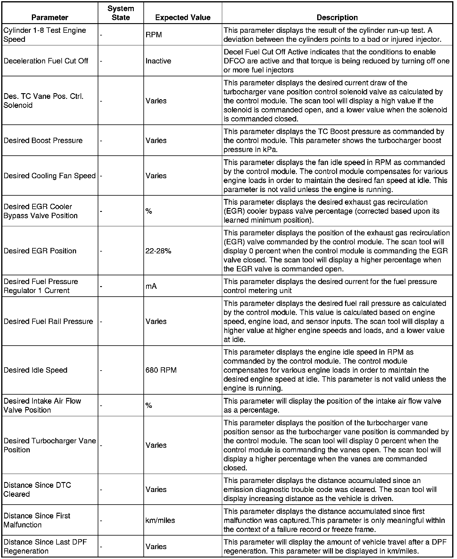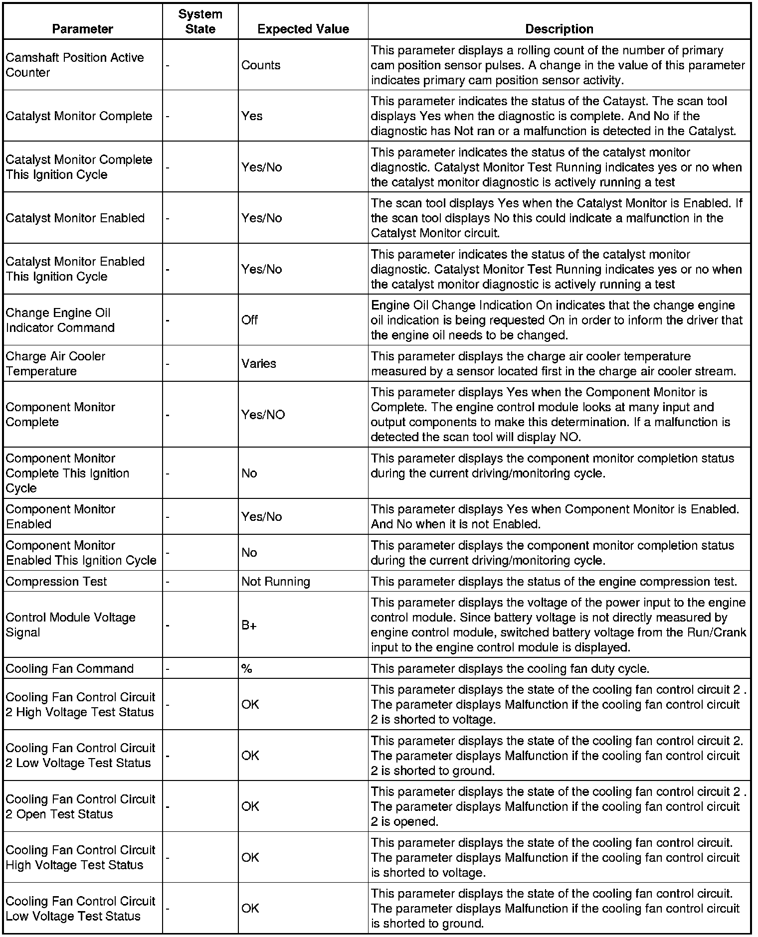 The Engine Control Module Scan Tool Data List contains all engine-related parameters that are available on the scan tool. The list is arranged in alphabetical order. A given parameter may appear in any one of the data lists, and in some cases may appear more than once, or in more than one data list in order to group certain related parameters together.