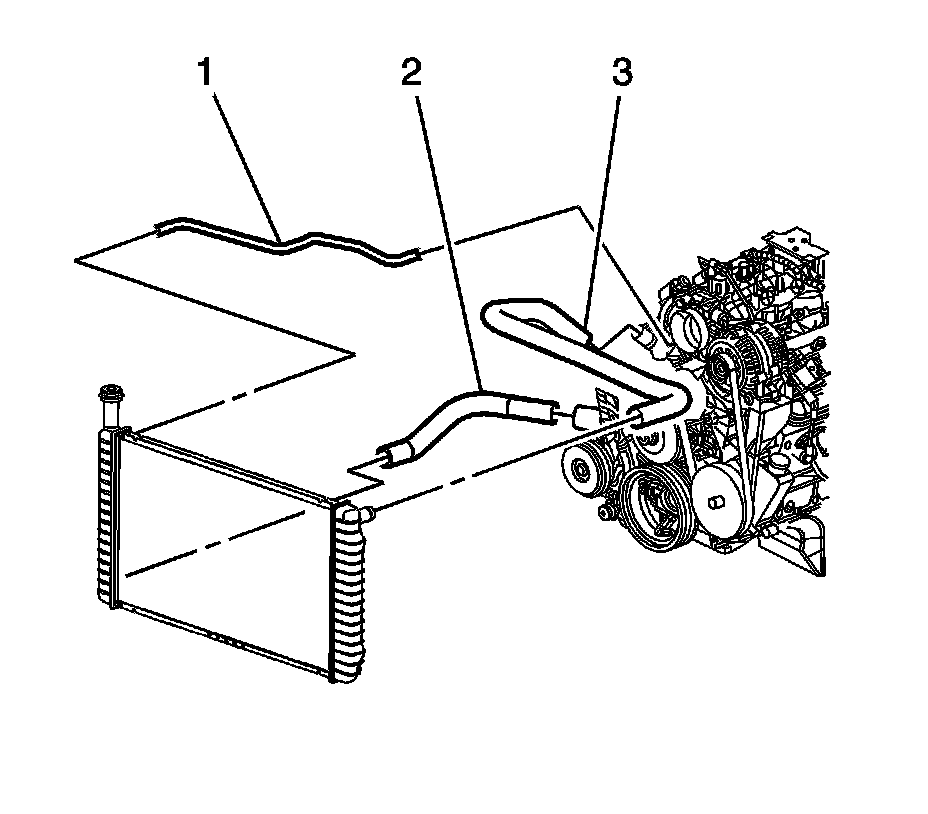 7. Remove the coolant reservoir. Refer to Coolant Recovery Reservoir Replacement (Coolant Recovery Reservoir Replacement).