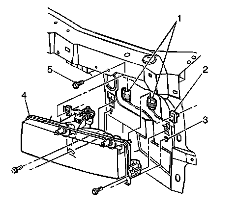 8. Remove the right and left headlamp capsules. Refer to Headlamp Capsule Replacement (Minus V22) (Headlamp Capsule Replacement (Minus V22)).