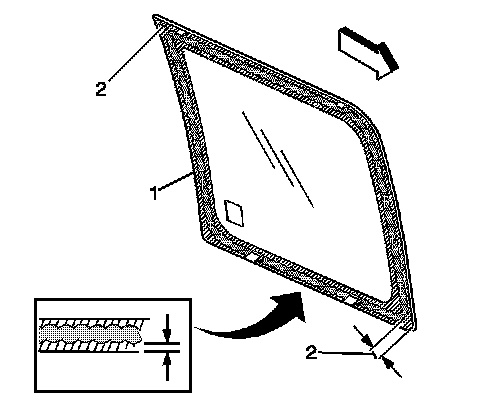 Note: Do not apply the (black #3) primer to the existing bead (1) of the urethane adhesive on the pinchweld flange. Apply the primer only to nicks, scratches or the primed surfaces.
