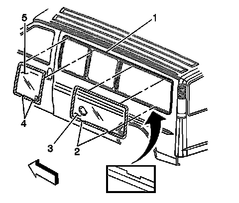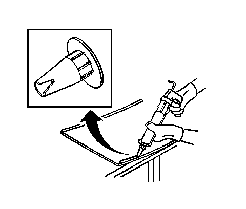 Note: The bodyside glass must be installed to the bodyside opening within 5 minutes after the urethane adhesive is dispensed.