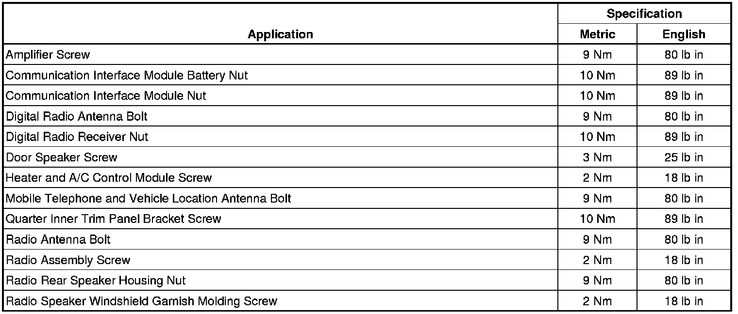 Fastener Tightening Specifications