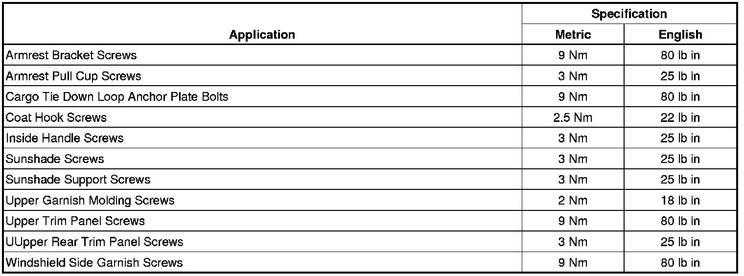 Fastener Tightening Specifications