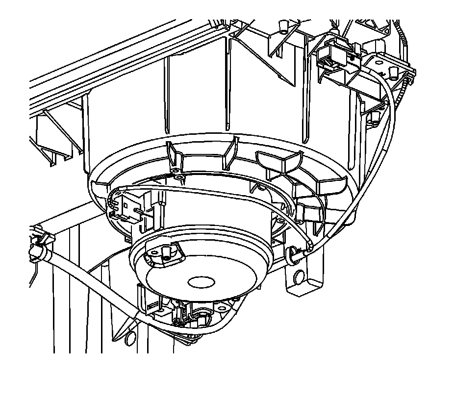 4. Install the blower motor and service ring into the HVAC module using the screws (5) included in the kit. Make certain the blower motor electrical connector is pointing rearward in the vehicle.