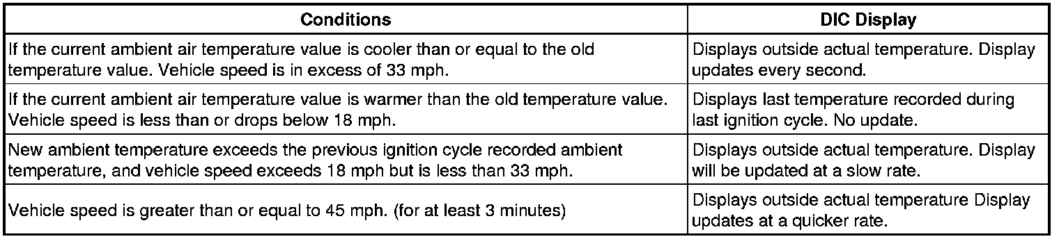 The ambient air temperature is updated and displayed by the DIC under the following conditions: