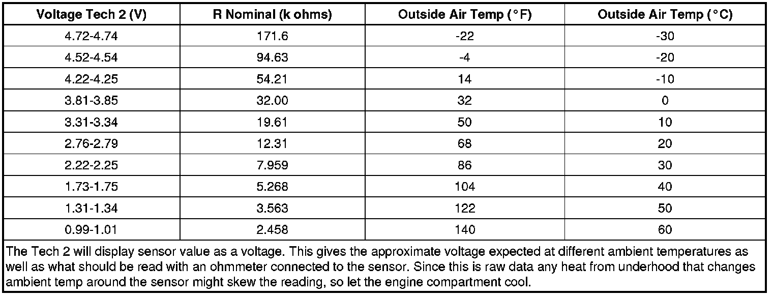 Sensor Resistance Table (Volts to Temp to Resistance)