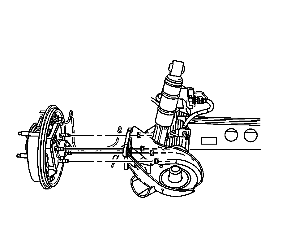 12. Connect the rear brake pipes and the hoses to the rear axle. Refer to Rear Brake Hose Replacement (Axle to Caliper) (Rear Brake Hose Replacement (Axle to Caliper))Rear Brake Hose Replacement (Body to Axle) (Rear Brake Hose Replacement (Body to Axle))