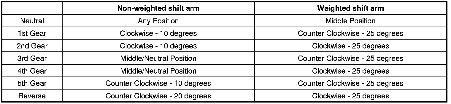 Shift Control Lever and Selector Control Lever Position/Rotation Specifications