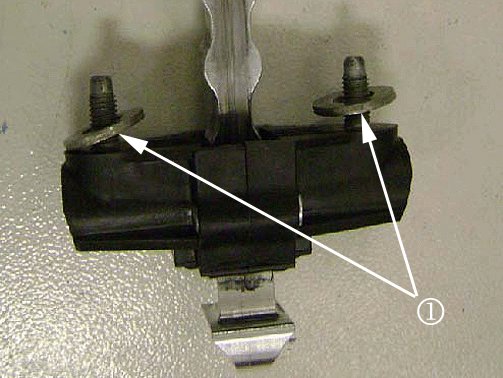 2. Add a 2 mm thick washer (1), P/N 11609679, or equivalent, to the bolt. Slide the washer onward to rest against the outer surface of the bracket.