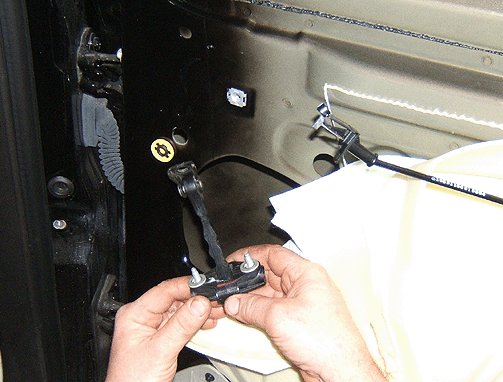 10. Reinstall the check link through the inside of the door, and position the check link to the inner door frame.
