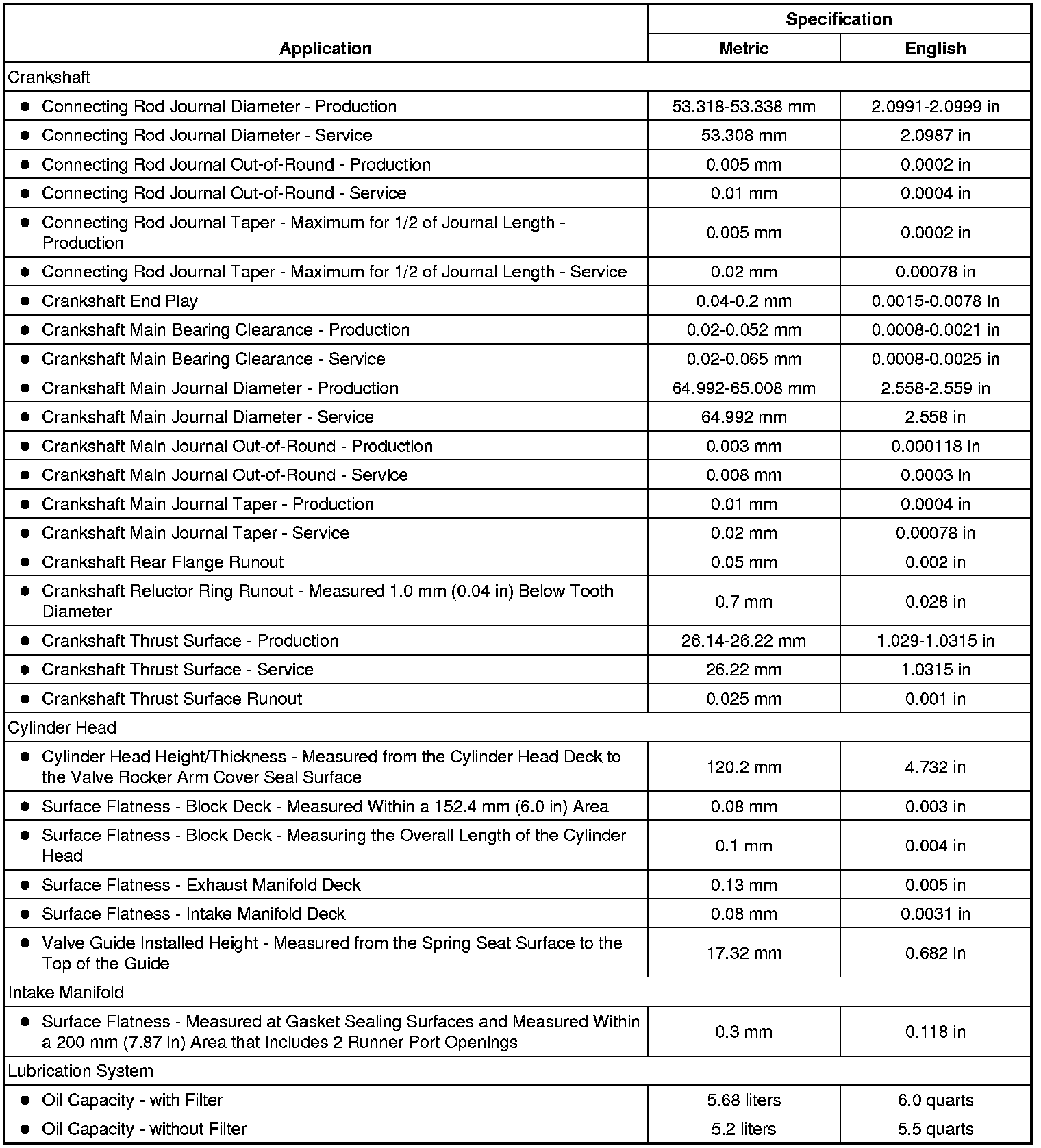 Engine Mechanical Specifications