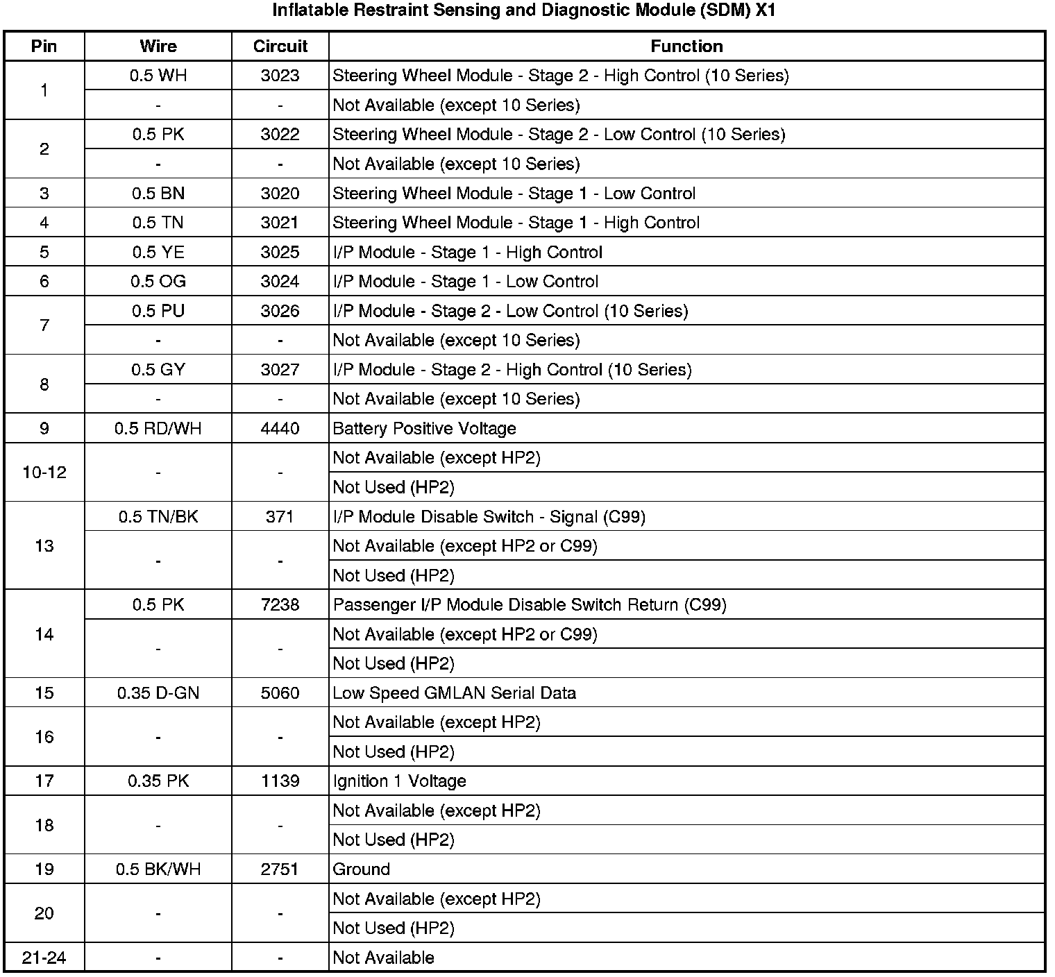 Inflatable Restraint Sensing and Diagnostic Module (SDM) X1