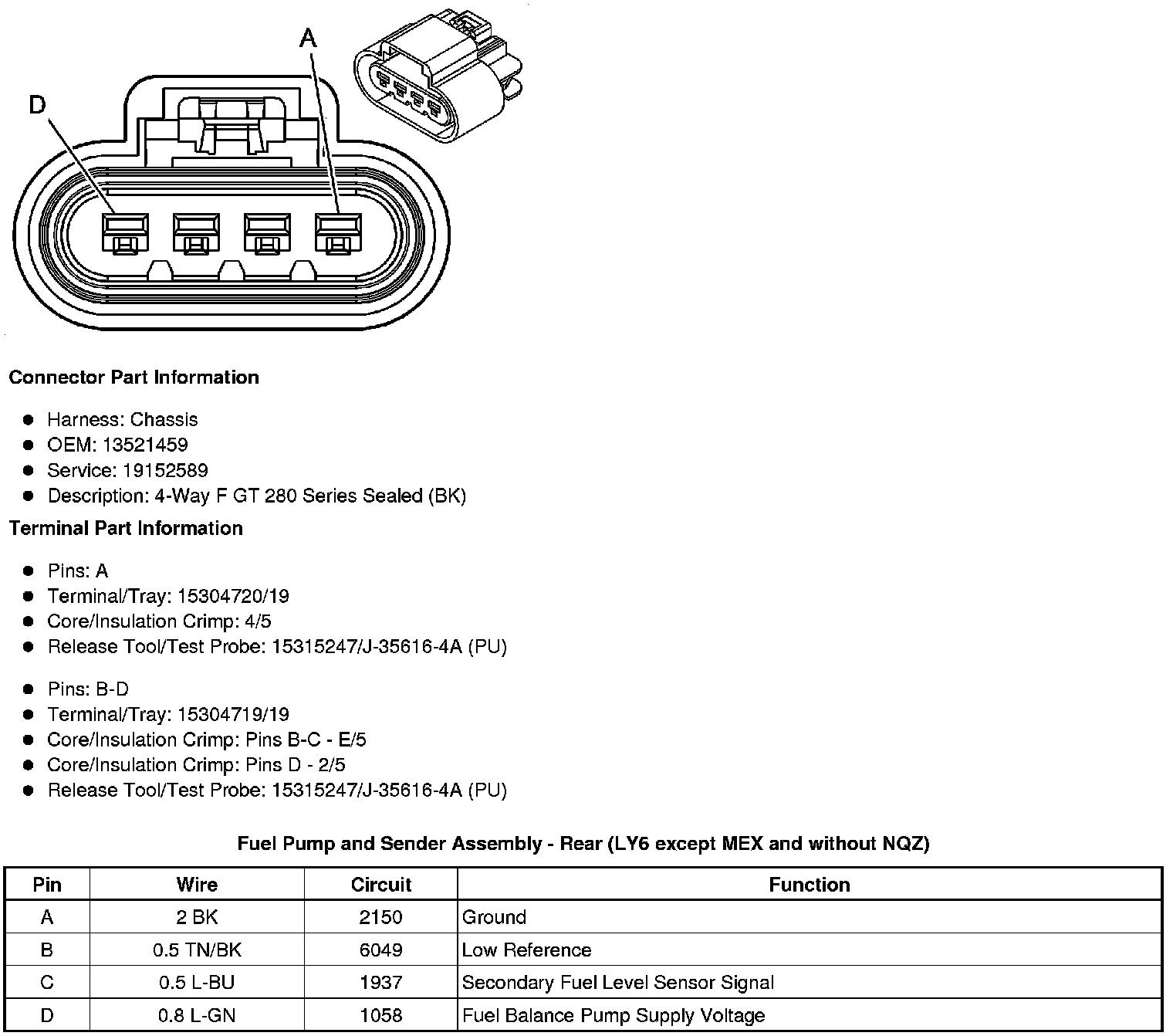 Fuel Pump and Sender Assembly - Rear (LY6 except MEX and without NQZ)