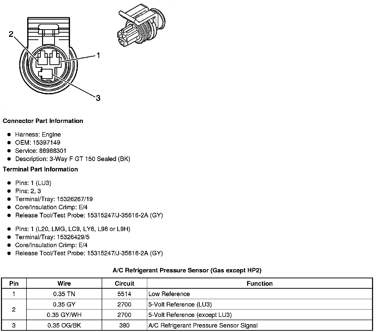 A/C Refrigerant Pressure Sensor (Gas except HP2)