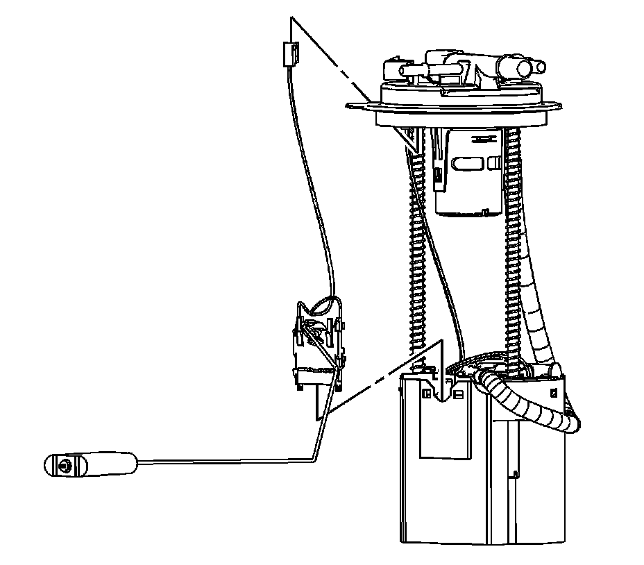 1. Remove the fuel tank module. Refer to Fuel Tank Fuel Pump Module Replacement (25 Ext/Crew Cab With 26 Gal Tank) (Service and Repair)Fuel Tank Fuel Pump Module Replacement (15/25 Reg/Ext/Crw Cab With 34 Gal Tnk) (Service and Repair)Fuel Tank Fuel Pump Module Replacement (15 Ext/Crew Cab With 26 Gal Tank) (Service and Repair)Fuel Tank Fuel Pump Module Replacement (15 Reg Cab With 26 Gal Tank) (Service and Repair)Fuel Tank Fuel Pump Module Replacement (35 Reg/Ext/Crew Cab With 34 Gal Tank) (Service and Repair).