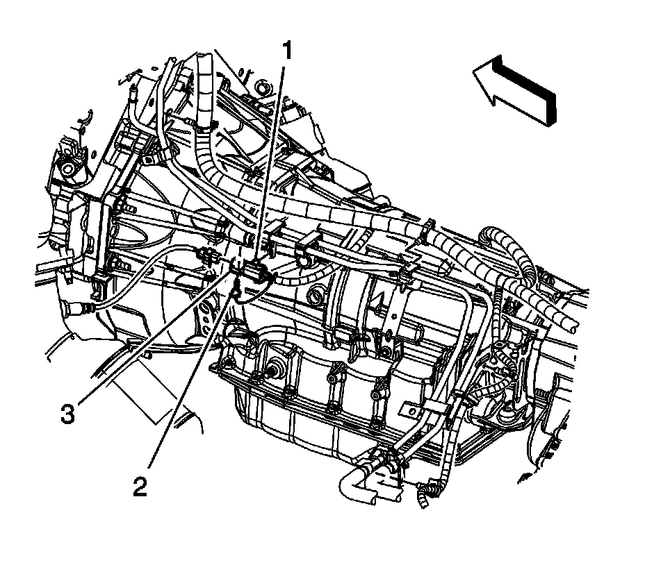 9. Disconnect the engine wiring harness electrical connector (3) from the HO2S.
