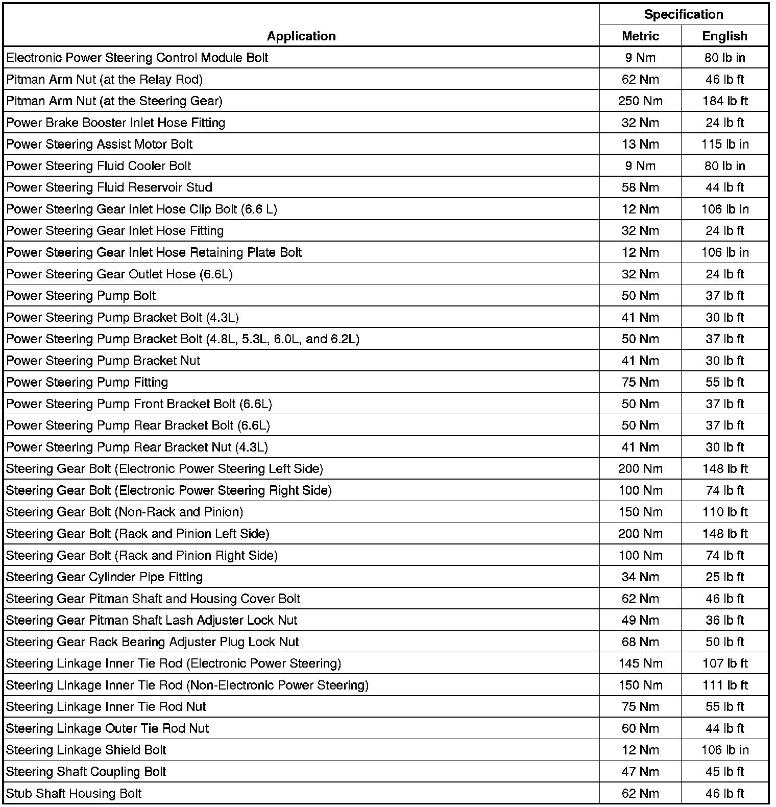 Fastener Tightening Specifications