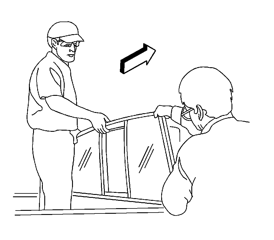 1. Install a stationary window into the opening. Refer to Adhesive Installation of Stationary Windows (Rear Window) (Adhesive Installation of Stationary Windows (Rear Window))Adhesive Installation of Stationary Windows (Windshield) (Adhesive Installation of Stationary Windows (Windshield)).