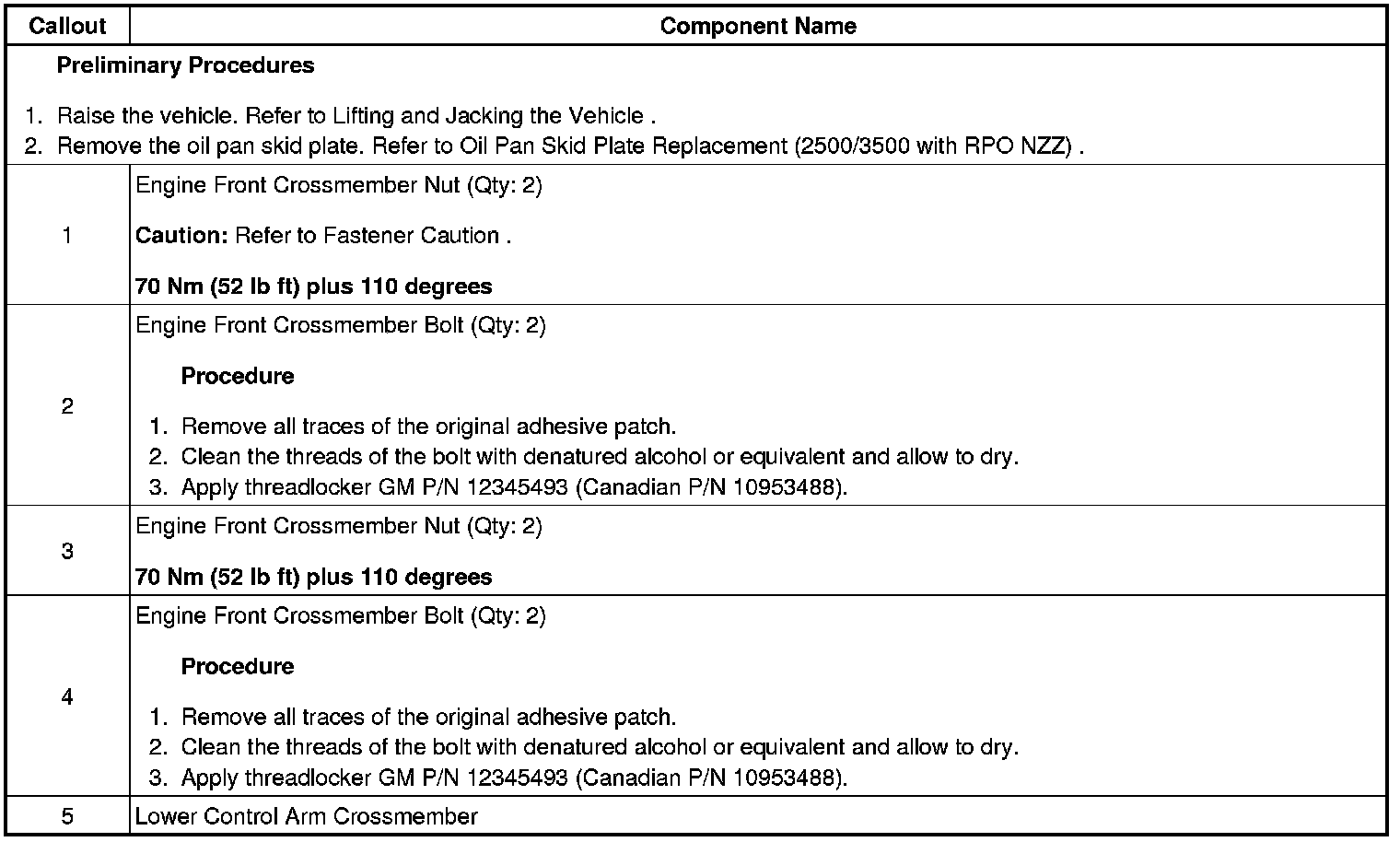 Frame Front Crossmember Replacement (2WD 2500HD, 3500)