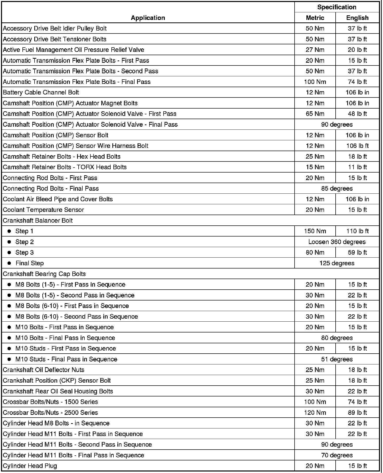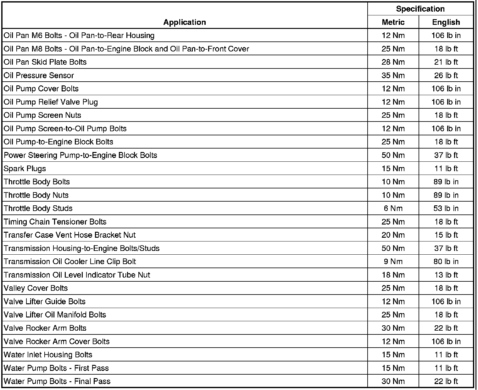 Fastener Tightening Specifications