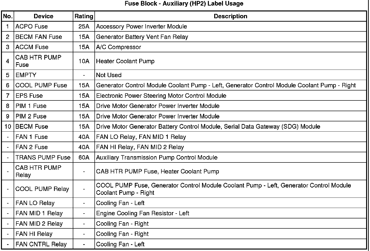 Fuse Block - Auxiliary (HP2) Label