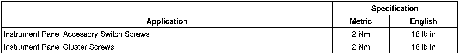 Instrument Panel, Gauges and Warning Indicators: Specifications