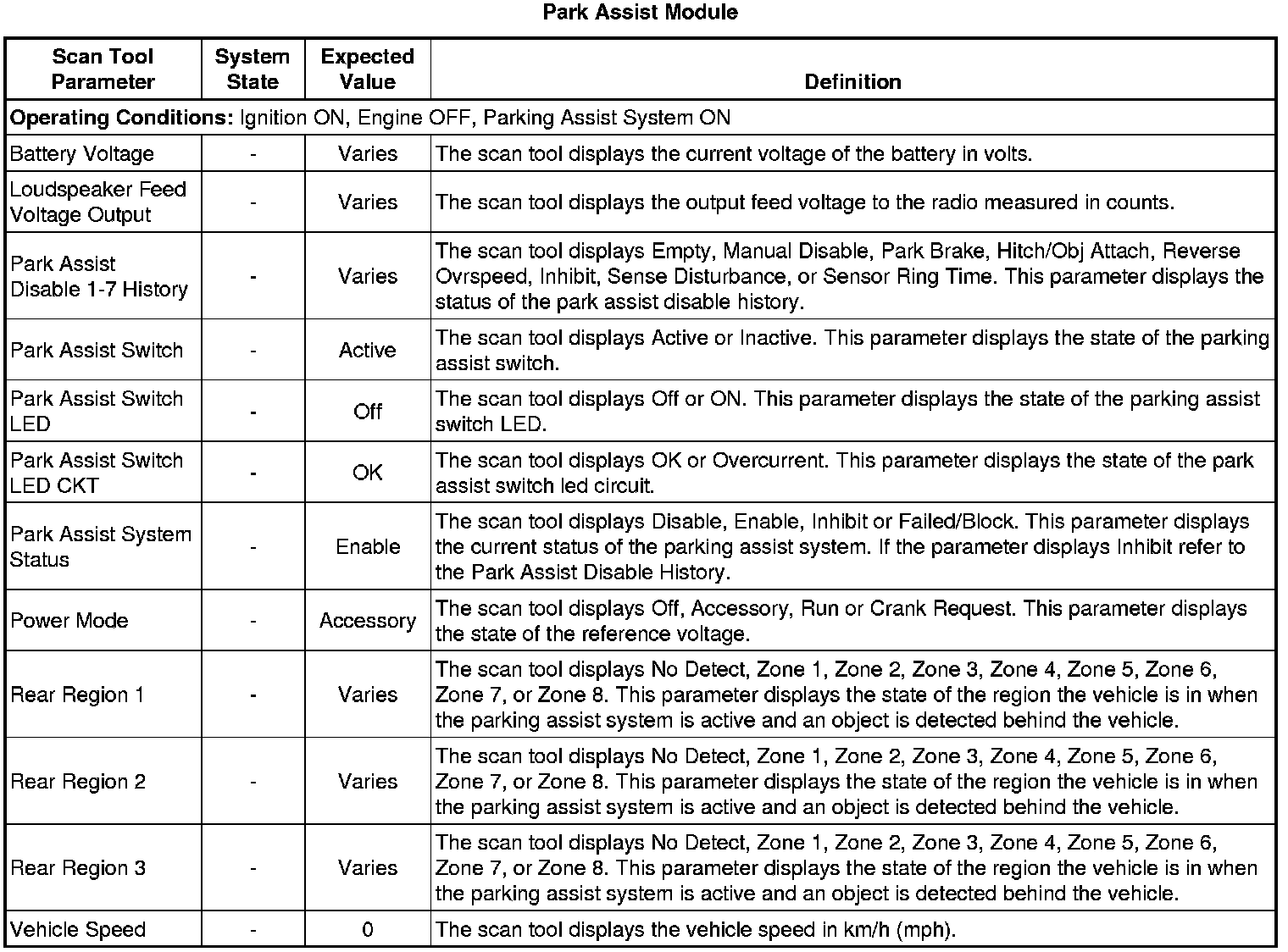 Object Alarm Module Scan Tool Information