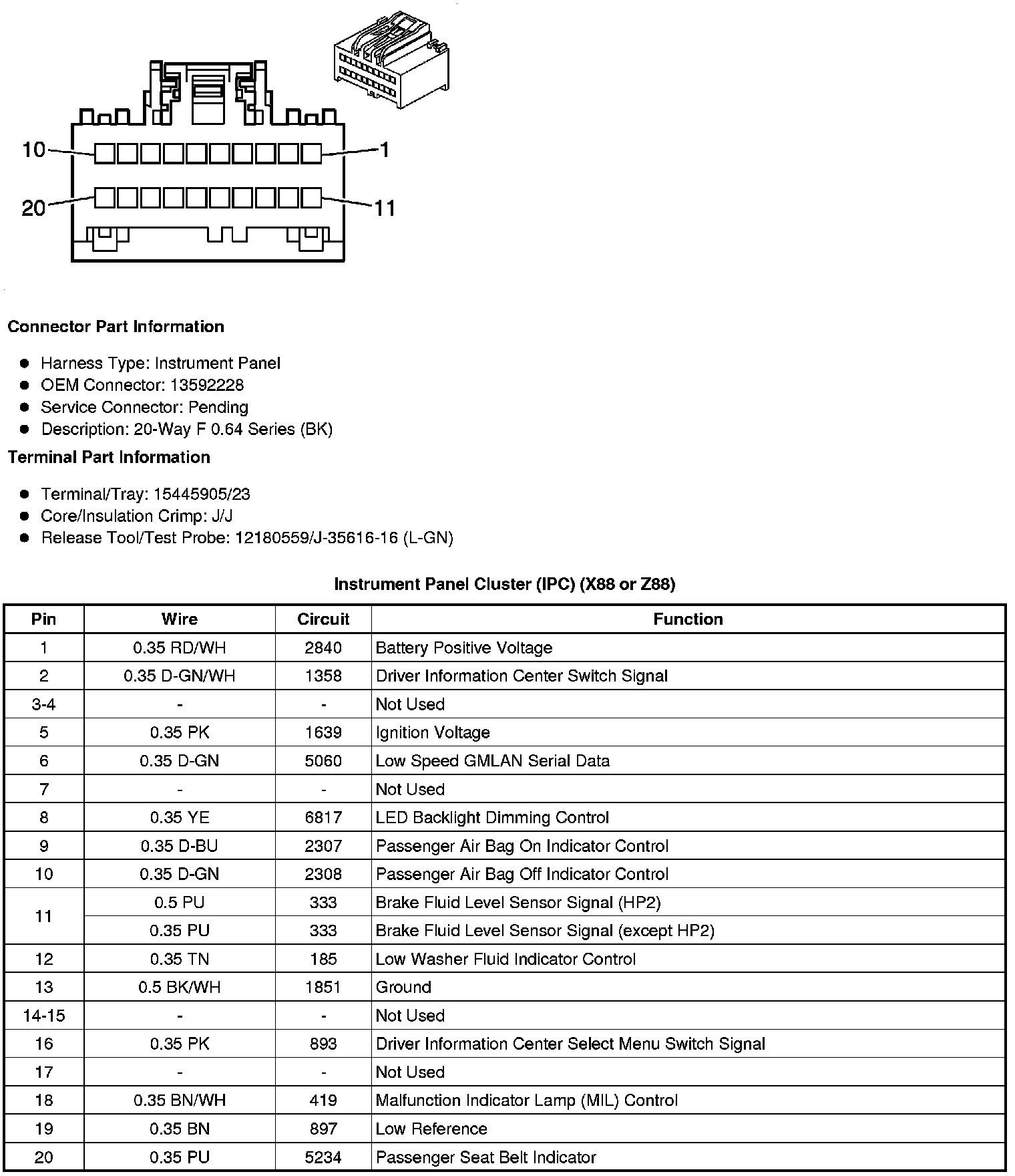Instrument Panel Cluster (IPC) (X88 or Z88)