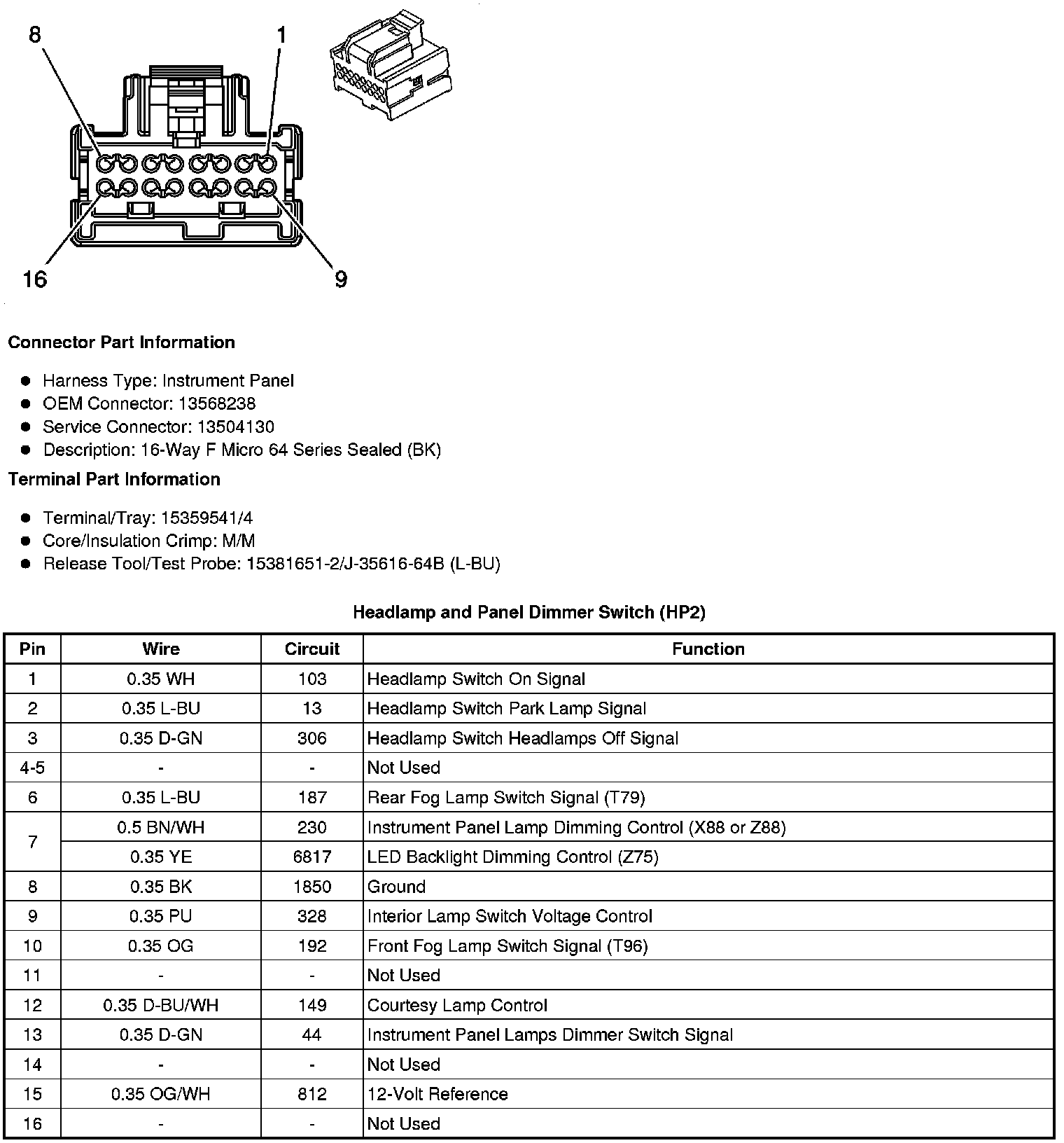 Headlamp and Panel Dimmer Switch (HP2)