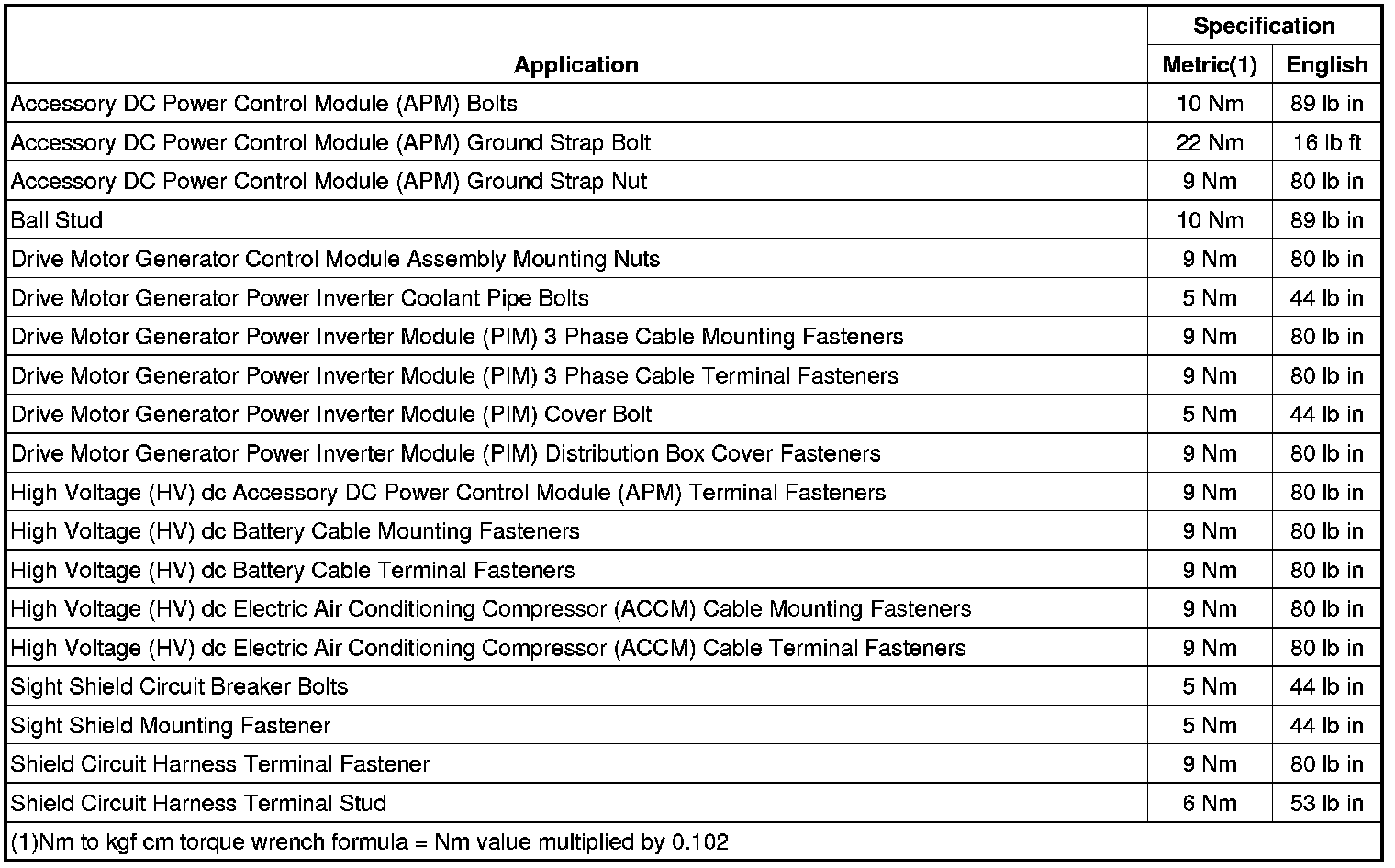 Fastener Tightening Specifications