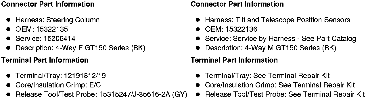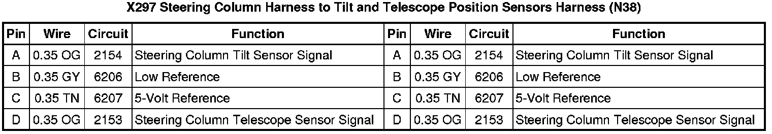 X297 Steering Column Harness to Tilt and Telescope Position Sensors Harness (N38)