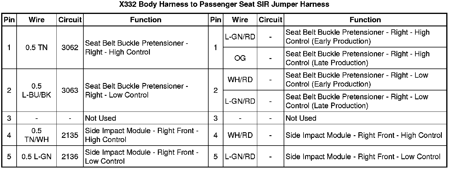X332 Body Harness to Passenger Seat SIR Jumper Harness