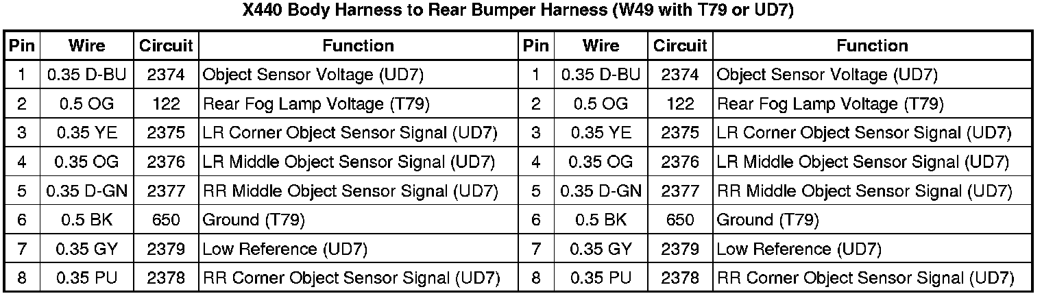 X440 Body Harness to Rear Bumper Harness (W49 with T79 or UD7)