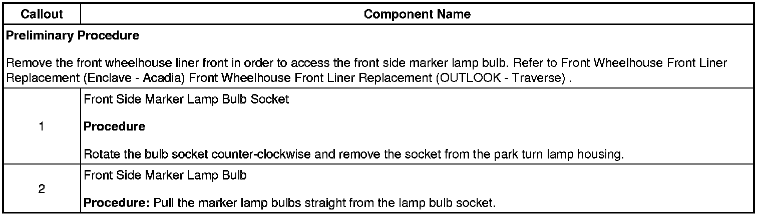 Front Side Marker Lamp Bulb Replacement (Traverse)