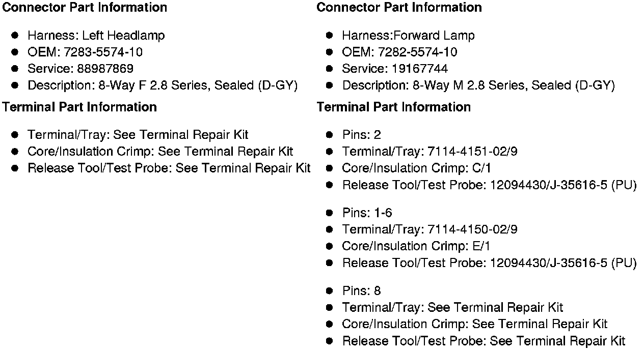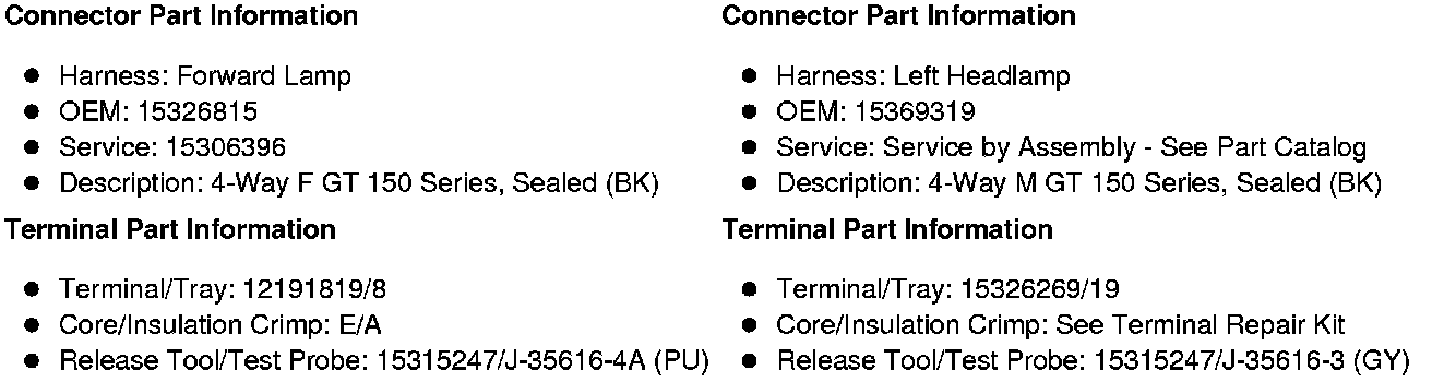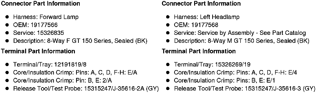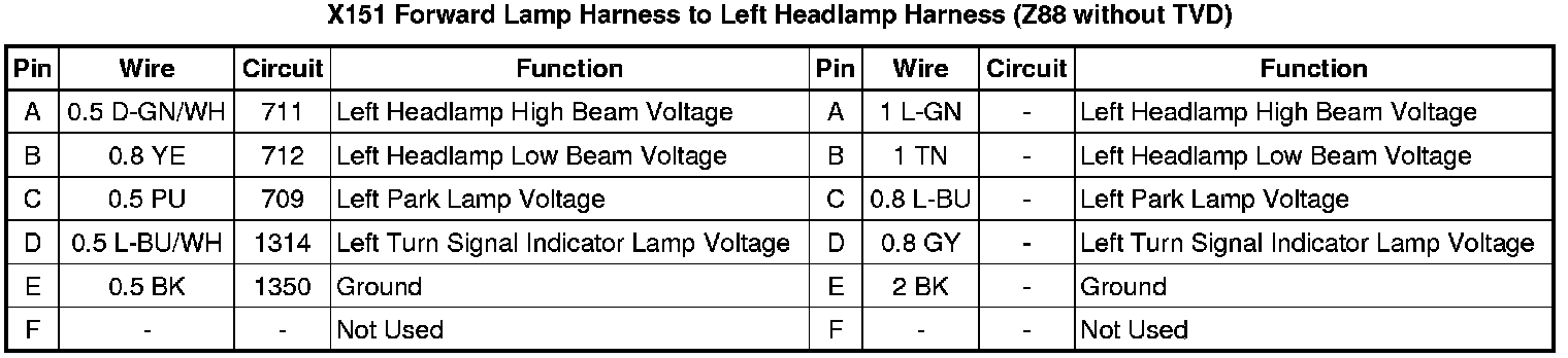 X151 Forward Lamp Harness to Left Headlamp Harness (Z88 without TVD)