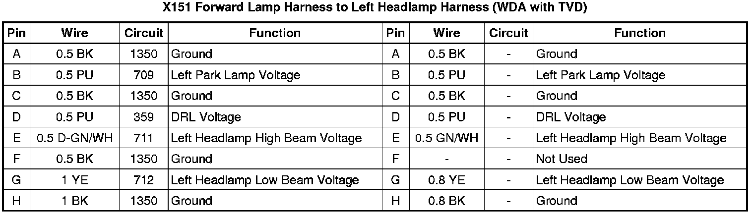 X151 Forward Lamp Harness to Left Headlamp Harness (WDA without TVD)