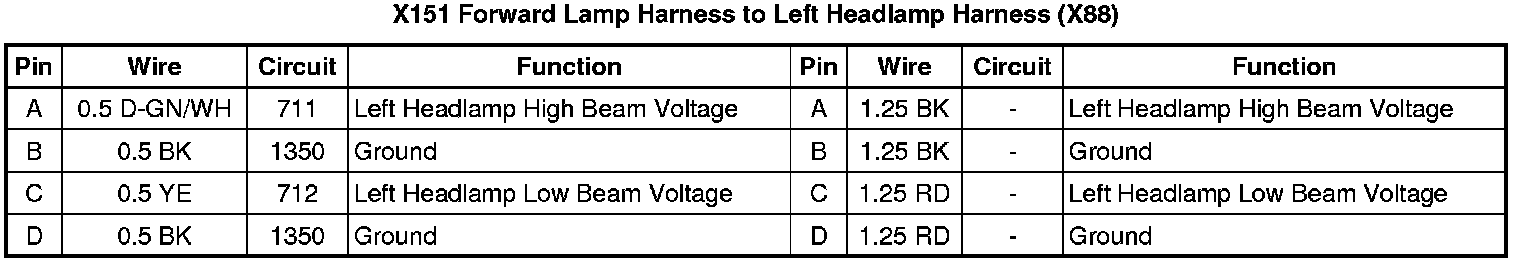 X151 Forward Lamp Harness to Left Headlamp Harness (X88)