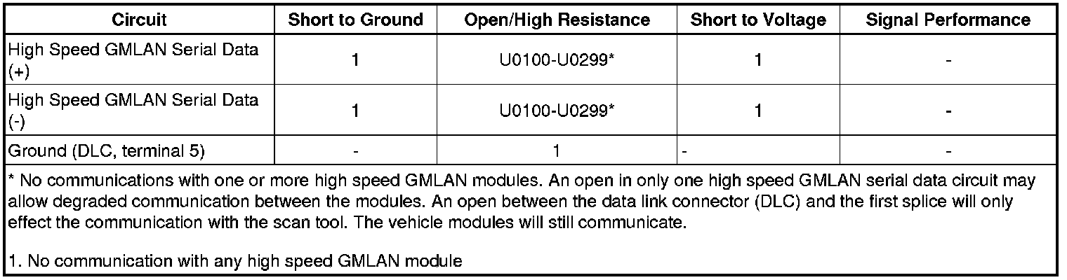 * Communication may be available between the BCM and the scan tool with the high speed GMLAN serial data system inoperative. This condition is due to the BCM using both the high and low speed GMLAN systems.
