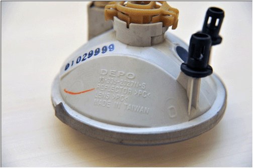 This fog lamp was returned for retaining moisture. As you can see it is marked with the Depo brand (it is also called out on the front lens).