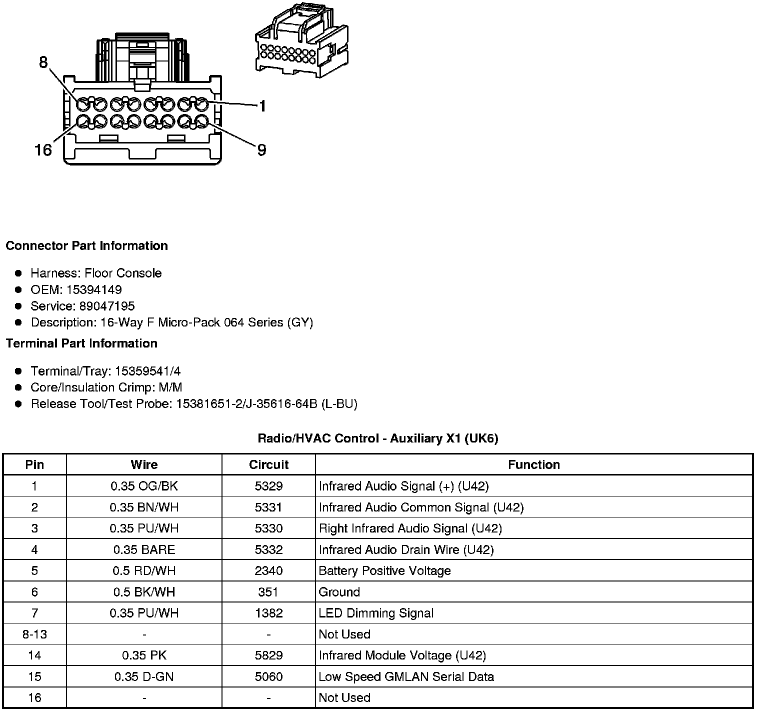 Radio/HVAC Control - Auxiliary X1 (UK6)