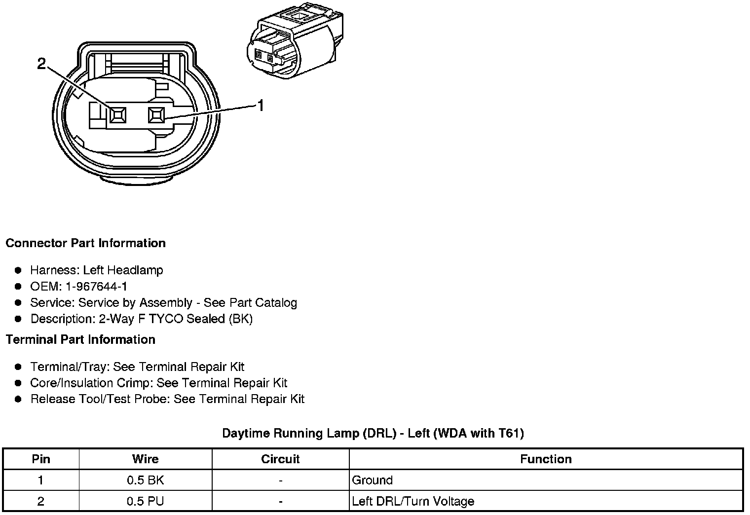 Daytime Running Lamp (DRL) - Left (W49 or Z88 with T61)