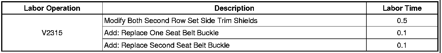 Dealers/retailers are to modify the second row seat side trim shields. If a safety belt buckle is damaged, dealers are to replace it.