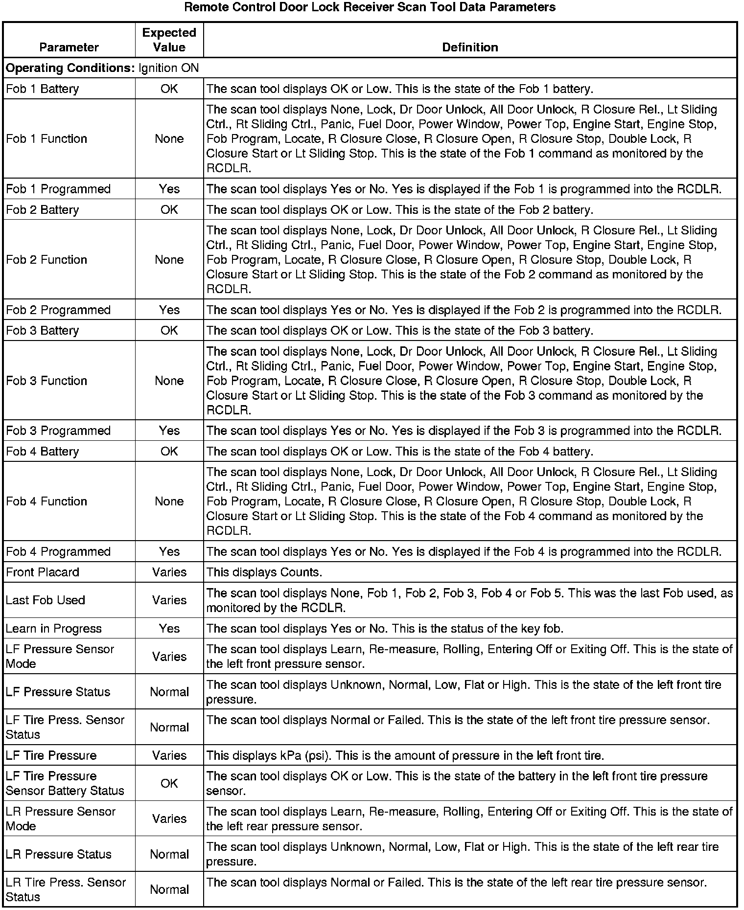 Door Lock Receiver Scan Tool Information