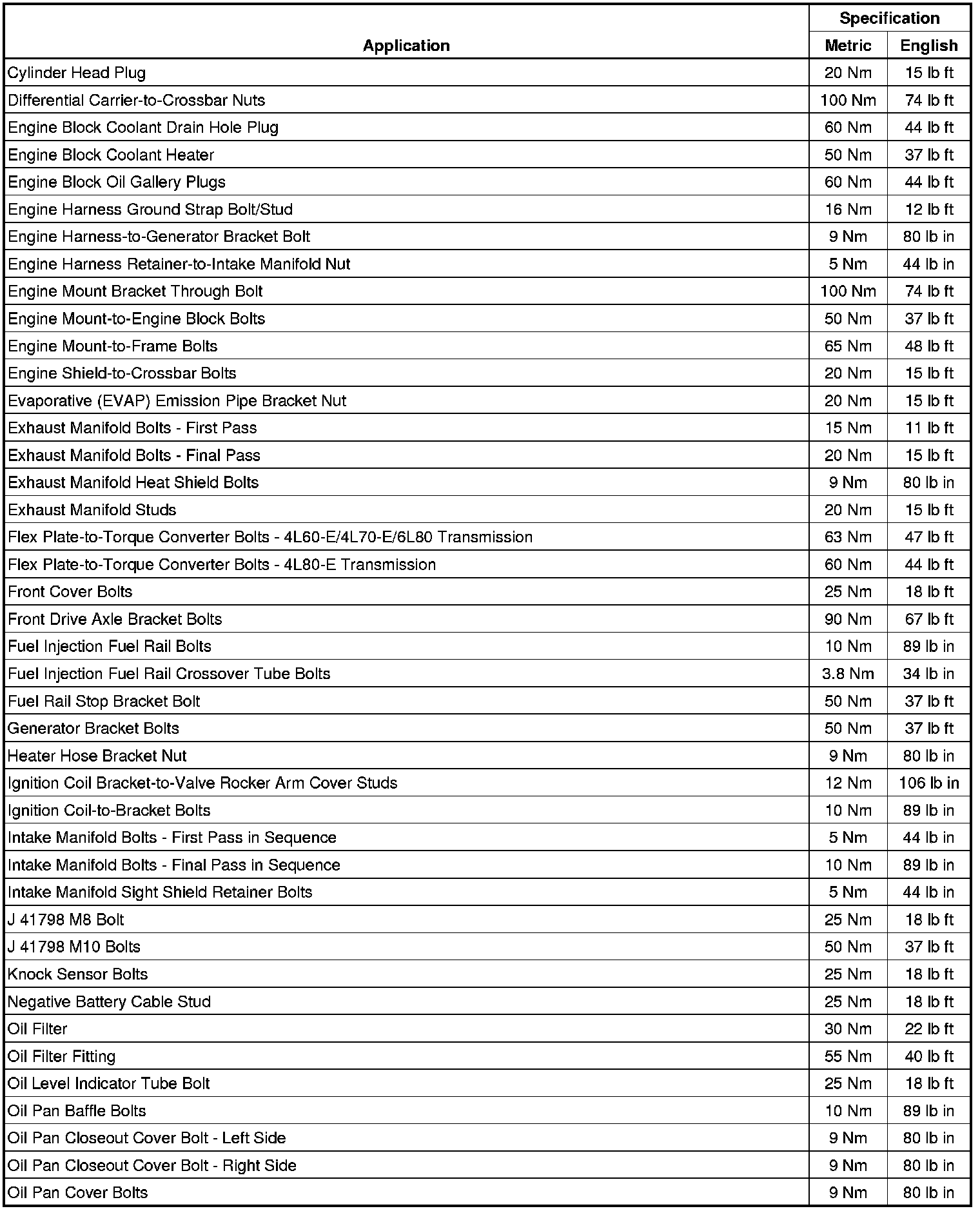 Fastener Tightening Specifications