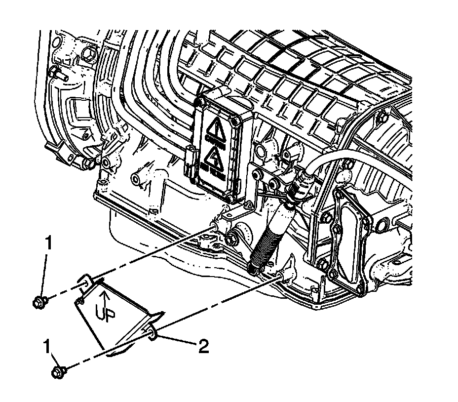 7. Install the range selector lever cable heat shield bolts (1) and tighten to 17 Nm (13 lb ft).