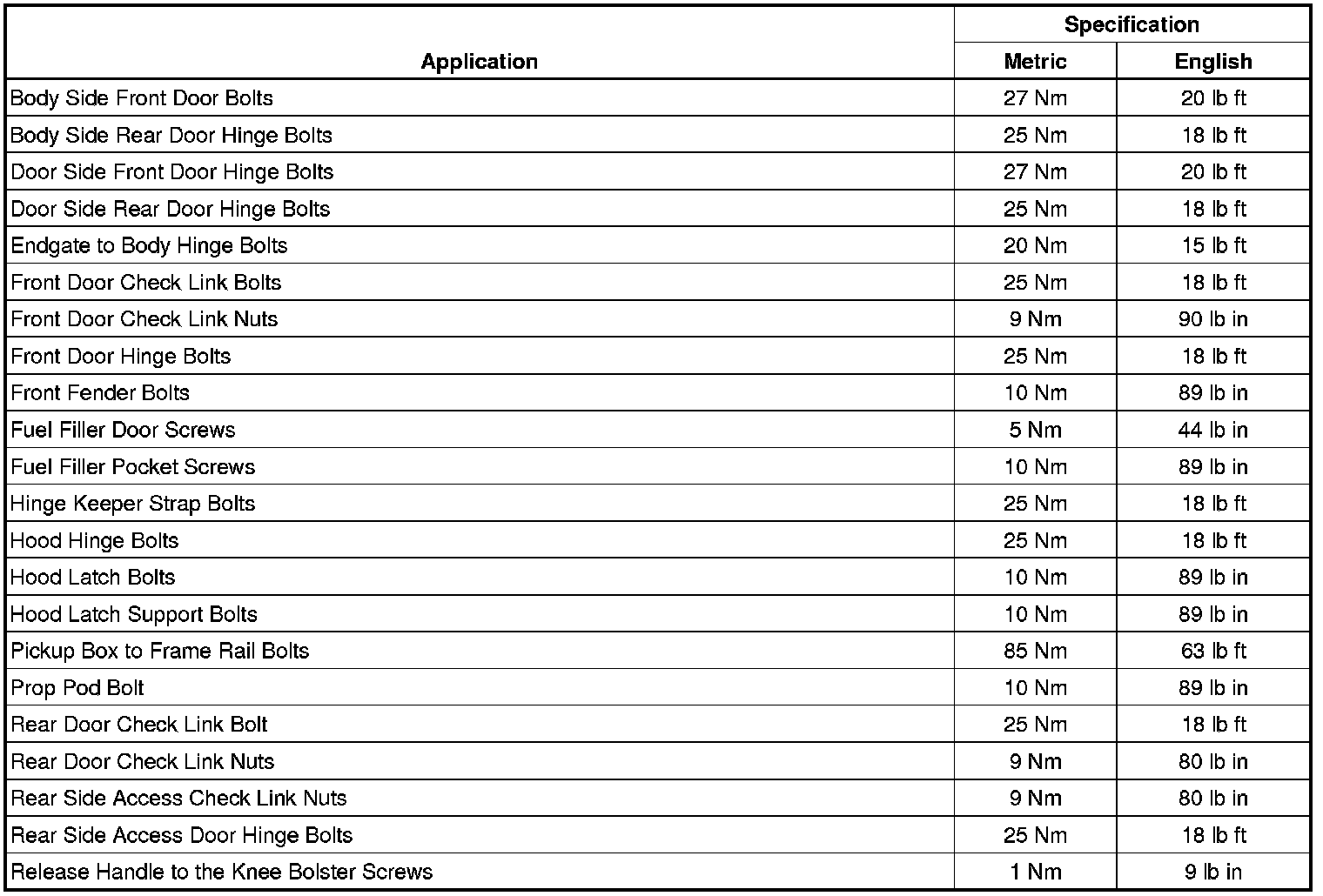 Fastener Tightening Specifications