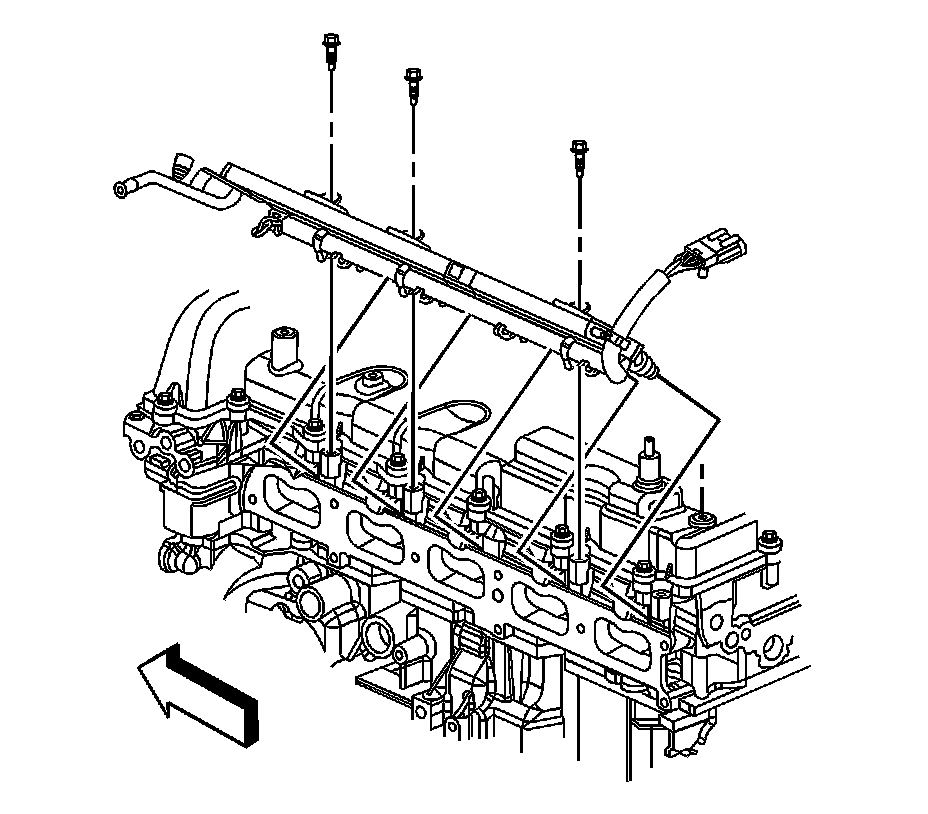 * Remove the fuel rail assembly carefully in order to prevent damage to the injector electrical connector terminals and the injector spray tips. Support the fuel rail after the fuel rail is removed in order to avoid damaging the fuel rail components.