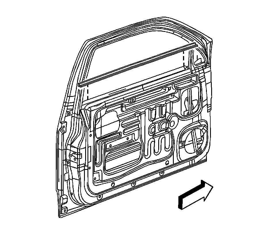 3. Remove the front door outer belt sealing strip by pulling the sealing strip from the front door pinchweld flange.